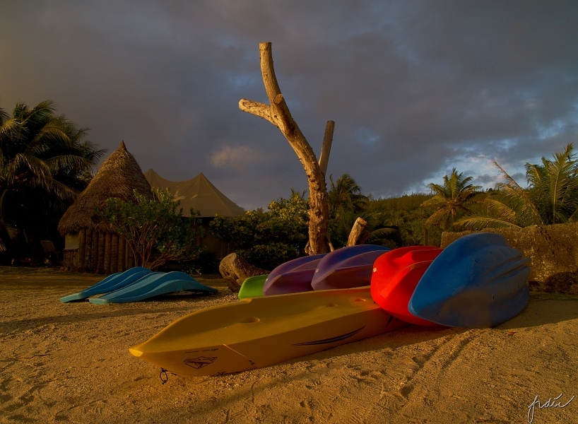 24.09.2010 6:14 Netradiční ubytko ve velkém stanu téměř na pláži, přímo naproti motu (ostrůvku na korálové bariéře) Araara. |